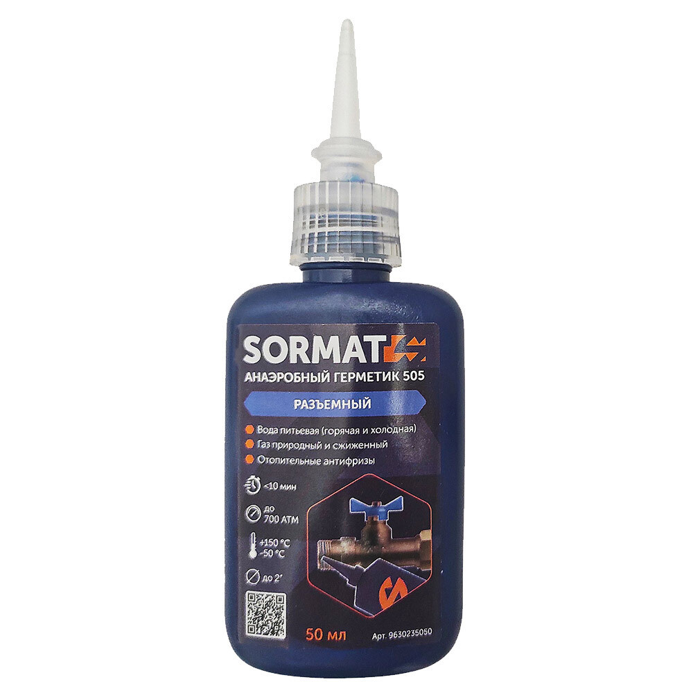 Sormat 505 анаэробный резьбовой герметик, обладающий средней прочностью, что облегчает демонтаж соединения при помощи ручных инструментов. При необходимости соединение можно демонтировать, предварительного нагрев его при помощи газовой горелки или строительного фена.