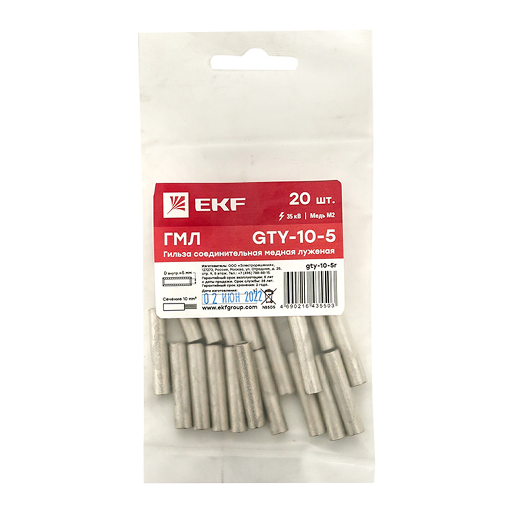 Гильза кабельная медная луженая EKF PROxima ГМЛ d5 мм 10 кв.мм (20 шт.)