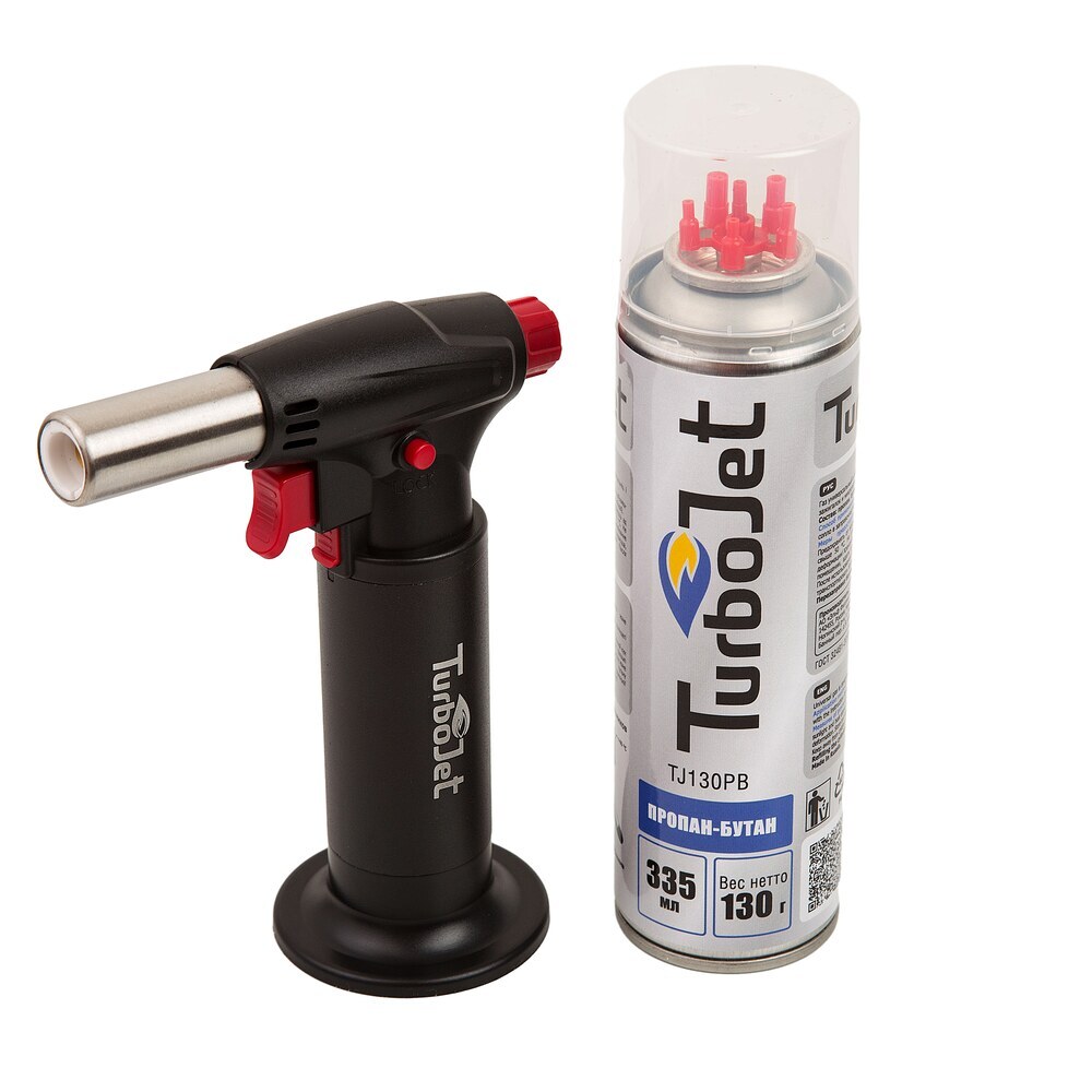 Комплектация — горелка с пьезоподжигом TJ2200-B на бутане баллон для заправки TJ130PB.