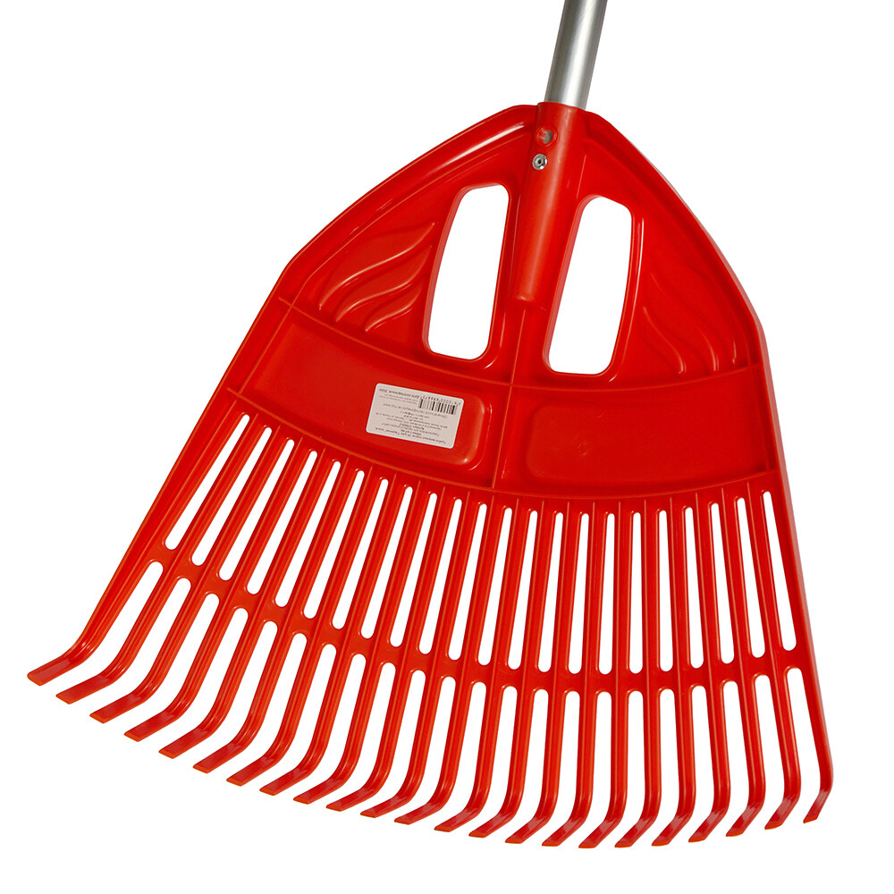 Пластмассовые веерные грабли, изготовленные из высококачественного полипропилена, предназначены для уборки листьев, тонких веток, мусора с газона. Имеют 23 зуба. Диаметр тулейки – 25 мм, поставляются с алюминиевым черенком длиной 1290 мм. Размер рабочей части – 500х430 мм.