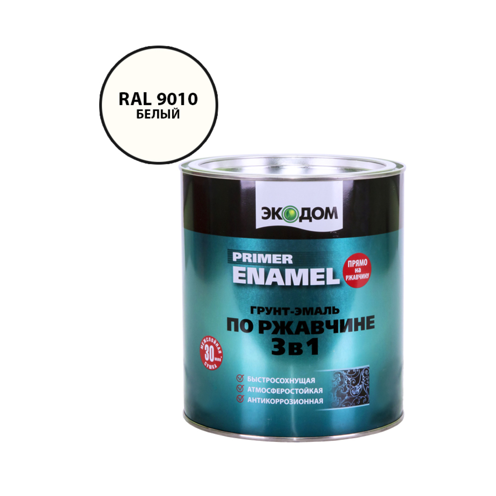 Грунт-эмаль по ржавчине 3в1 Экодом белая RAL 9010 полуматовая 2,2 кг