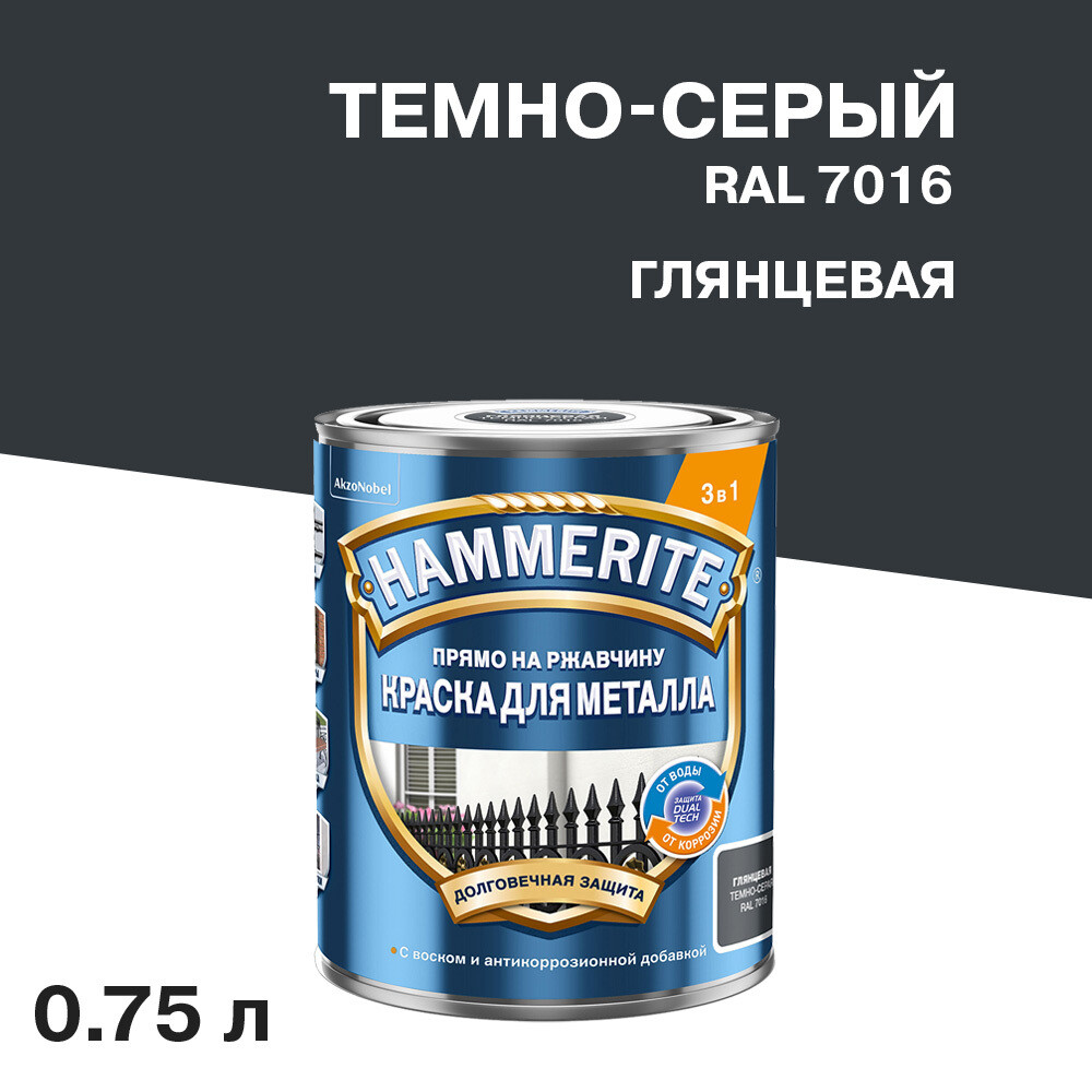 Грунт-эмаль по ржавчине 3в1 Hammerite темно-серая RAL 7016 гладкая глянцевая 0,75 л