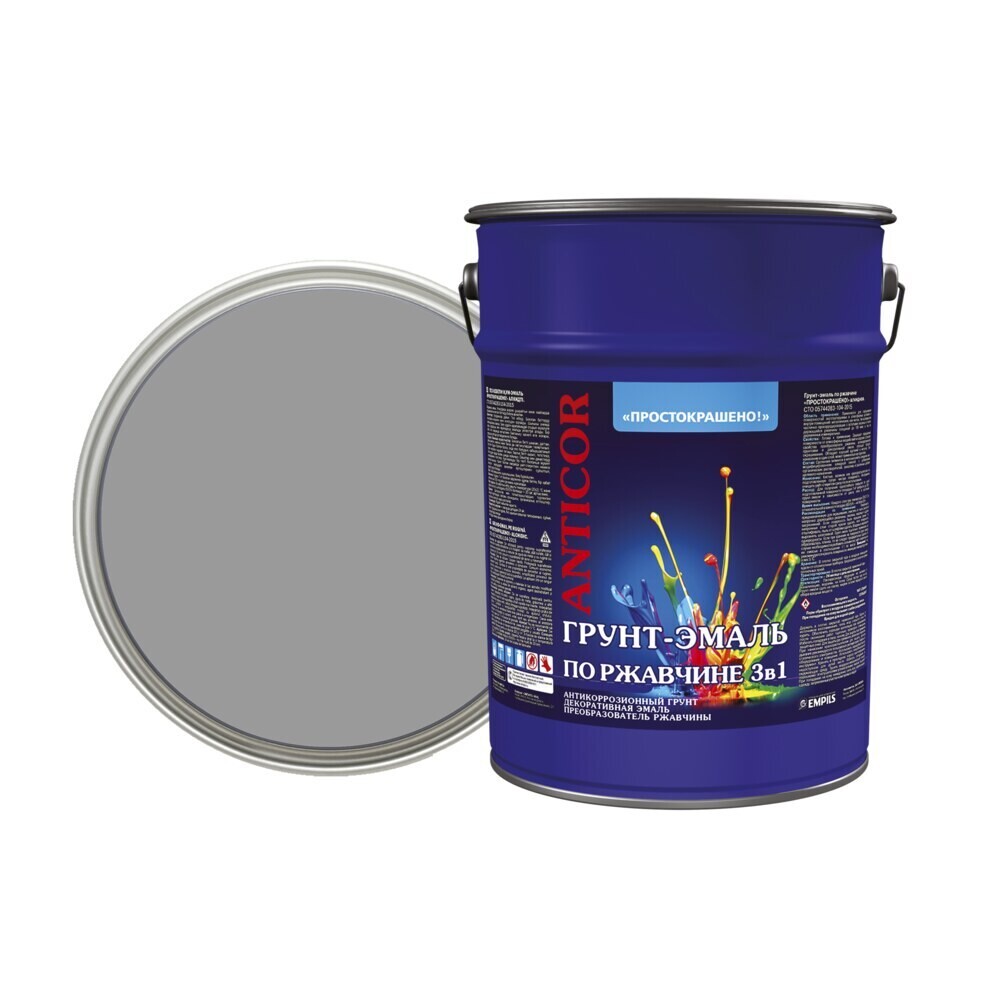 Грунт-эмаль по ржавчине 3в1 Простокрашено серая глянцевая 5 кг
