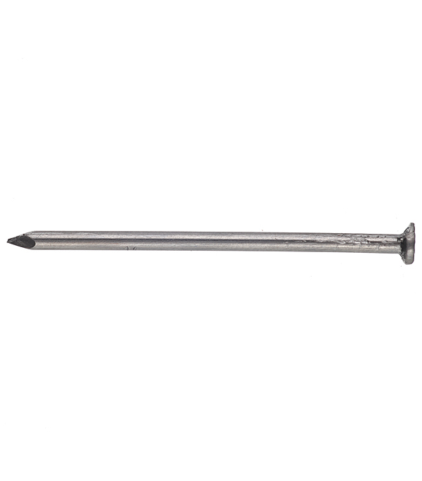 Гвоздь представляет собой длинный и прямой стержень с небольшими неровностями рядом со шляпкой, что улучшает качество соединения.