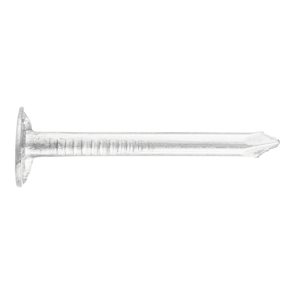 Плоская шляпка увеличенного диаметра, а также наличие неровностей на теле гвоздя рядом со шляпкой обеспечивают прочное и надежное соединение материалов. При использовании в агрессивной среде, во избежание подтеков, необходимо закрывать шляпку гвоздя дополнительным защитным слоем, (краска, шпаклевка) или основным, чистовым материалом.