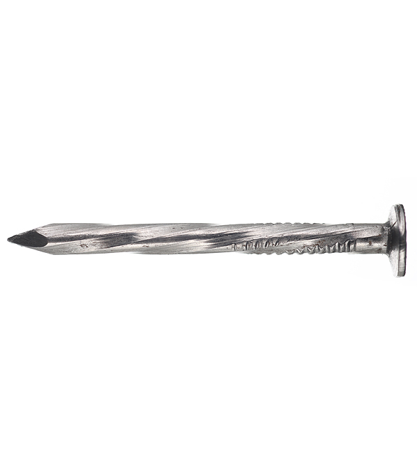 Гвоздь представляет собой длинный и прямой стержень квадратного сечения, завинченный по спирали, с небольшими неровностями рядом со шляпкой, что улучшает качество соединения.