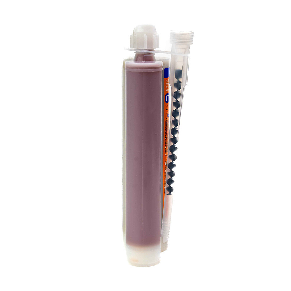 Двухкомпонентный клеевой состав на основе эпоксидной смолы, имеет допуск на установку в сжатой и растянутой зонах бетона, натуральном камне, имеет допуск работы в мокром и затопленном бетоне, а также работы под водой. Работает с разными диаметрами шпилек и арматуры.
