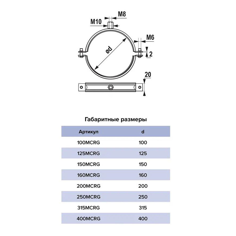 Предназначен для крепления воздуховодов диаметром 400 мм к стене или к полу. На хомуте есть универсальная гайка с внутренней резьбой М 8/10.