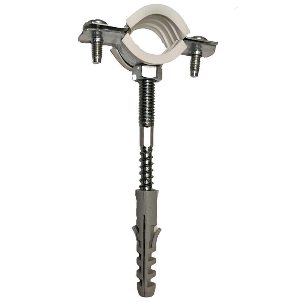 Хомут сантехнический 1 1/4″ 39-46 мм оцинкованная сталь со шпилькой и дюбелем