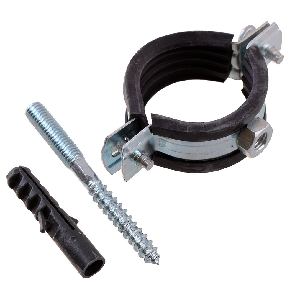 Состав: хомут, шпилька 8х80 – оцинкованная сталь, уплотнитель – резина, дюбель 10х50 мм – полипропилен.