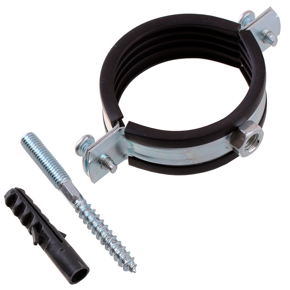 Хомут сантехнический 2″ 59-63 мм оцинкованная сталь со шпилькой и дюбелем