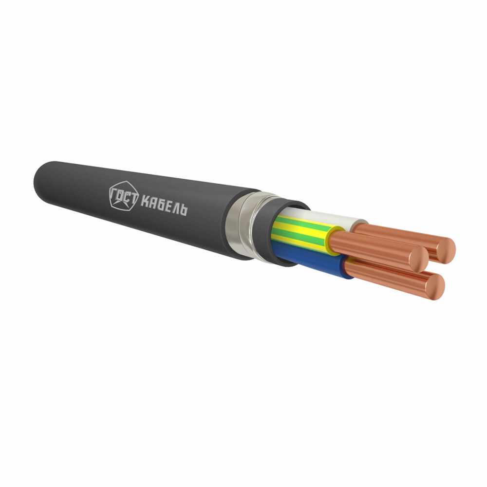 Кабель с медными жилами, с изоляцией из ПВХ пластиката, бронированный стальными лентами с защитным шлангом из ПВХ пластиката, не распространяющий горение по категории А с низким дымо- и газовыделением.