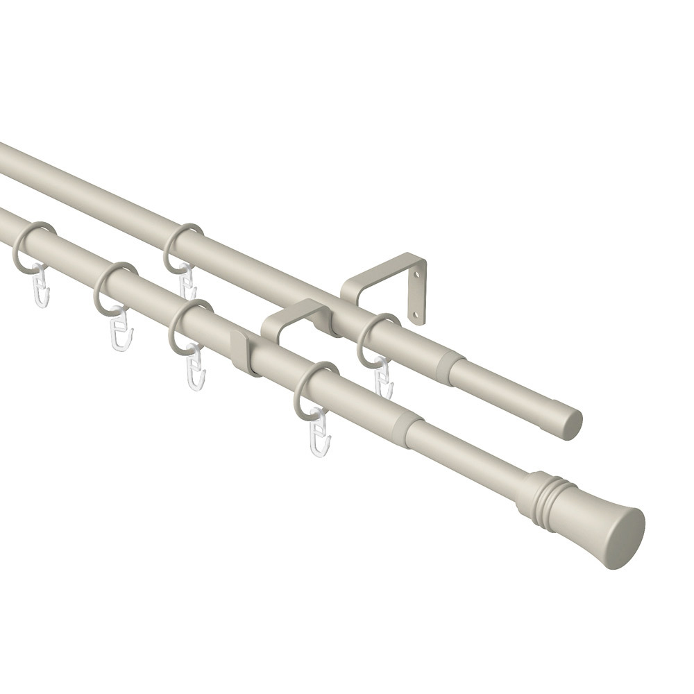 Телескопическая конструкция карниза позволяет регулировать длину карниза под размеры окон. Широкий размерный ряд от 160 до 300 см делает такие карнизы универсальным решением для большинства оконных проёмов, а необходимая длина устанавливается в момент крепления карниза. Два ряда штанг позволяют комбинировать между собой портьеры и тюль, создавая уютную атмосферу. Благодаря раздвижной конструкции карниза вы можете менять интерьер своих комнат, переставляя карниз в другую комнату. В комплект входит все необходимое для установки — кронштейны, кольца, крючки, наконечники, крепеж, что делает использование телескопического карниза простым и удобным. Карниз предназначен как для портьер на шторной ленте, так и для портьер на люверсах. Максимальный вес портьер – 5 кг. Разнообразие декоративных решений карнизов-телескопов открывает большие возможности в стильном и функциональном оформлении окна.