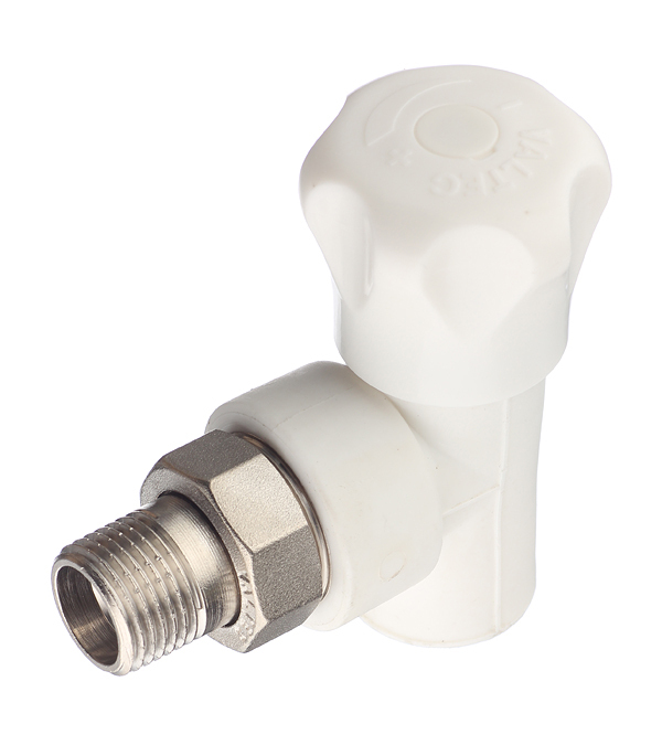 Клапан полипропиленовый Valtec 20 мм х 1/2 НР(ш) для радиатора с американкой угловой (VTp.718.V.02004)