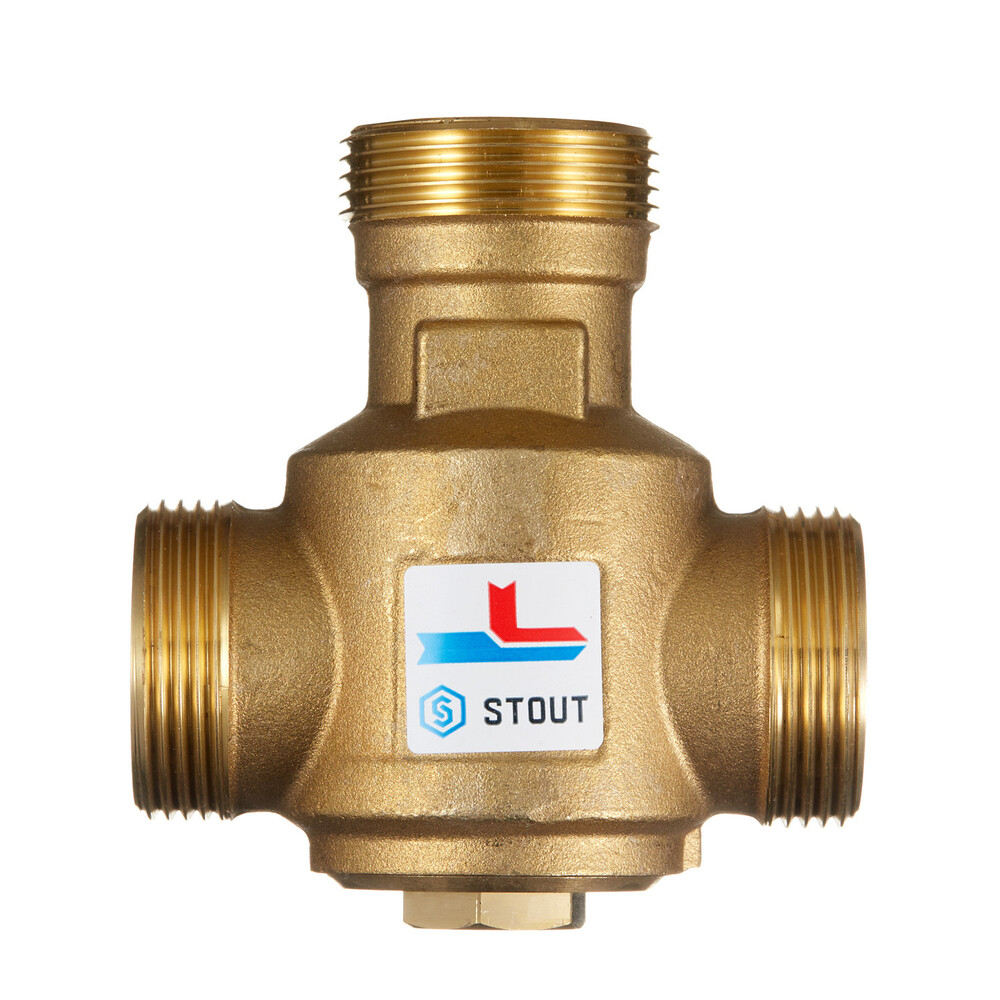 Клапан термостатический Stout 1 1/4 НР(ш) х 1 1/4 НР(ш) х 1 1/4 НР(ш) для твердотопливных котлов 55 °С (SVM-0030-325504)