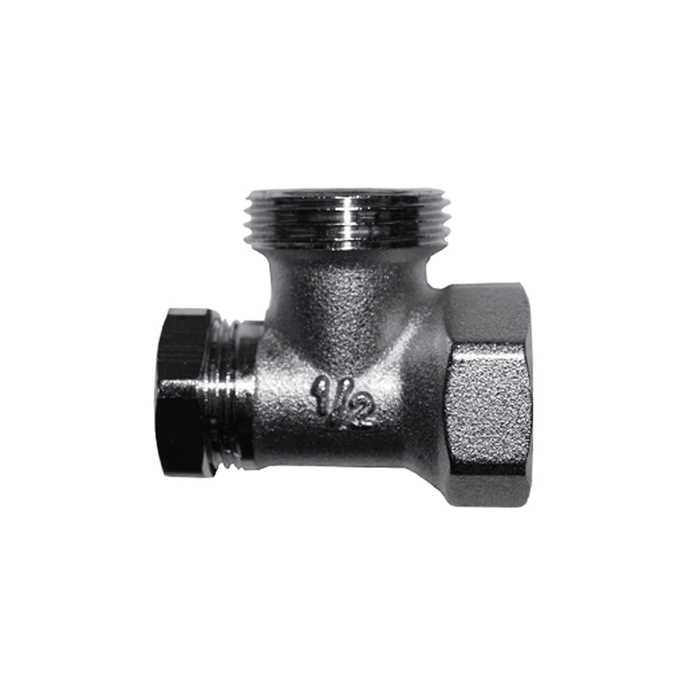 Запорный клапан SR Rubinetterie угловой, соединение для железной трубы, без хвостовика. Предназначен для подключения водяных отопительных приборов.