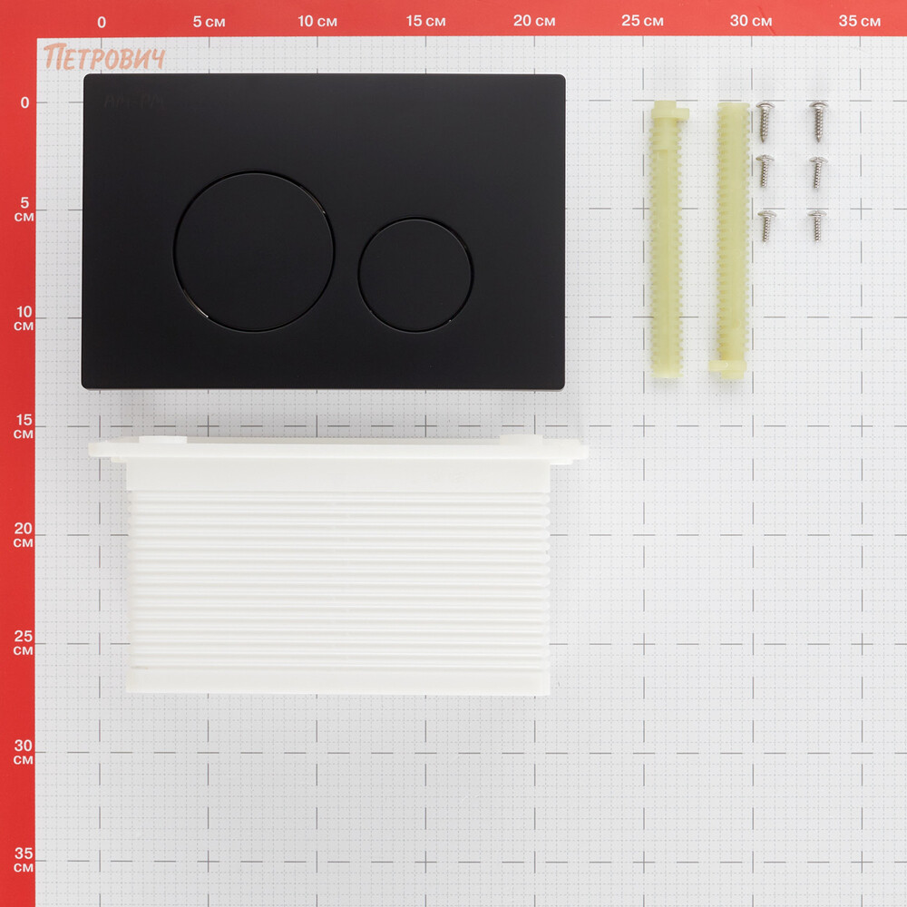 Стильная пневматическая клавиша для инсталляции в черном цвете – небольшая деталь, которая всегда будет на виду. Клавиша изготовлена из пластика. Размер клавиши 210х138 мм.