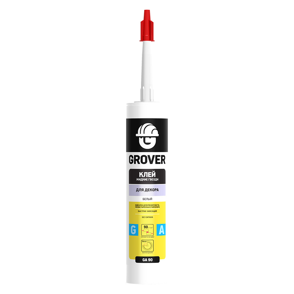 Клей для декора Grover GA90 на основе акрилового полимера обеспечивает высокую прочность клеевого шва на сдвиг 110 кг/см2 и разрыв, а также быструю фиксацию склеиваемых элементов. Предназначен для помещений с повышенной влажностью. Не имеет запаха. Не повреждает склеиваемые поверхности и не оставляет желтых пятен. Удобен в работе, не стекает, не капает, является идеальной основой для окрашивания.