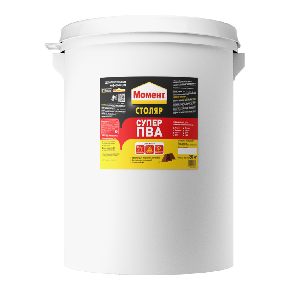 Клей ПВА Момент Столяр Супер D2 влагостойкий 30 кг