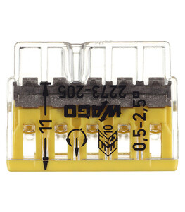 Клемма на 5 проводов Wago 0,5-2,5 кв.мм самозажимная без пасты (100 шт.) (2273-205/2668)