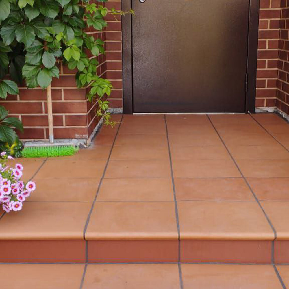 Клинкерная плитка, ступень предназначена для оформления уличных входных групп, террас, площадок, пешеходных дорожек, парковок и т.д. Морозостойкая, ударопрочная, с низким водопоглощением. Поверхность элементов обладает противоскользящими свойствами, что обеспечит безопасность использования и при этом позволяет легкий уход и уборку.