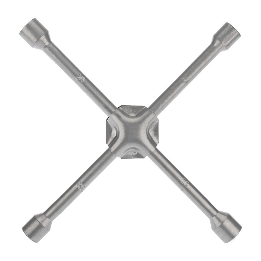 Ключ-крест баллонный предназначен для смены колес грузовых или легковых автомобилей. Усиленная крестовая конструкция обеспечивает надежность применения. Инструмент изготовлен из высококачественной углеродистой стали 45. Размер головок – 17х19х21х22 мм. Твердость материала рабочих частей ключа составляет 41 HRС.