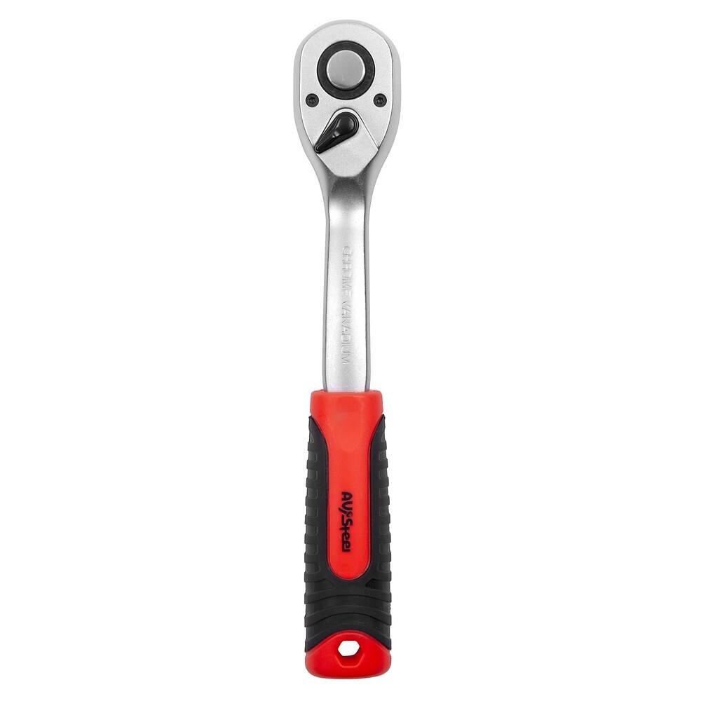 Трещотка AV Steel 1/2″ 72 зубца 255 мм с двухкомпонентной изогнутой ручкой предназначена для быстрого закручивания или откручивания гаек. 72-зубцовый механизм привода трещотки позволяет осуществлять переход в 5°.