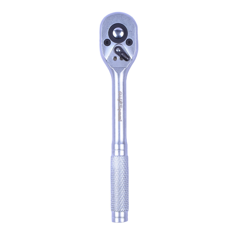 Трещотка AV Steel 1/4″ 45 зубца 155 мм с металлической рукояткой предназначена для быстрого закручивания или откручивания гаек. 45-зубцовый механизм привода трещотки позволяет осуществлять переход в 8°.