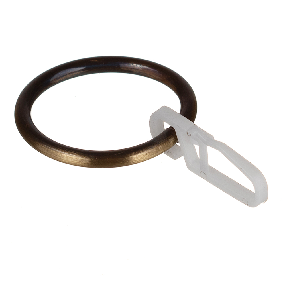 Кольцо с крючком для круглого металлического карниза 16 мм. Кольцо «бесшумное» благодаря специальной пластиковой вставке внутри кольца.