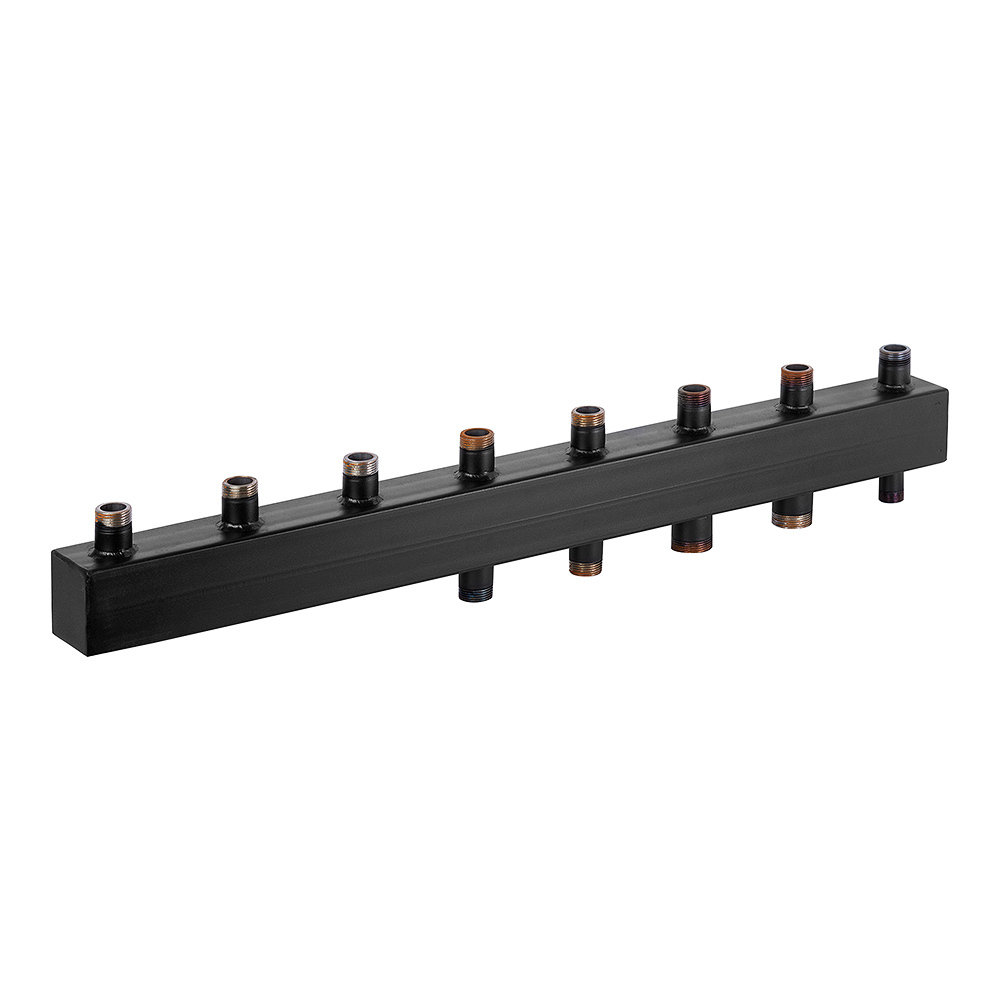 С помощью данного коллектора происходит эффективное теплораспределение на все необходимые отопительные контуры: горячее водоснабжение, теплый пол и т.п.