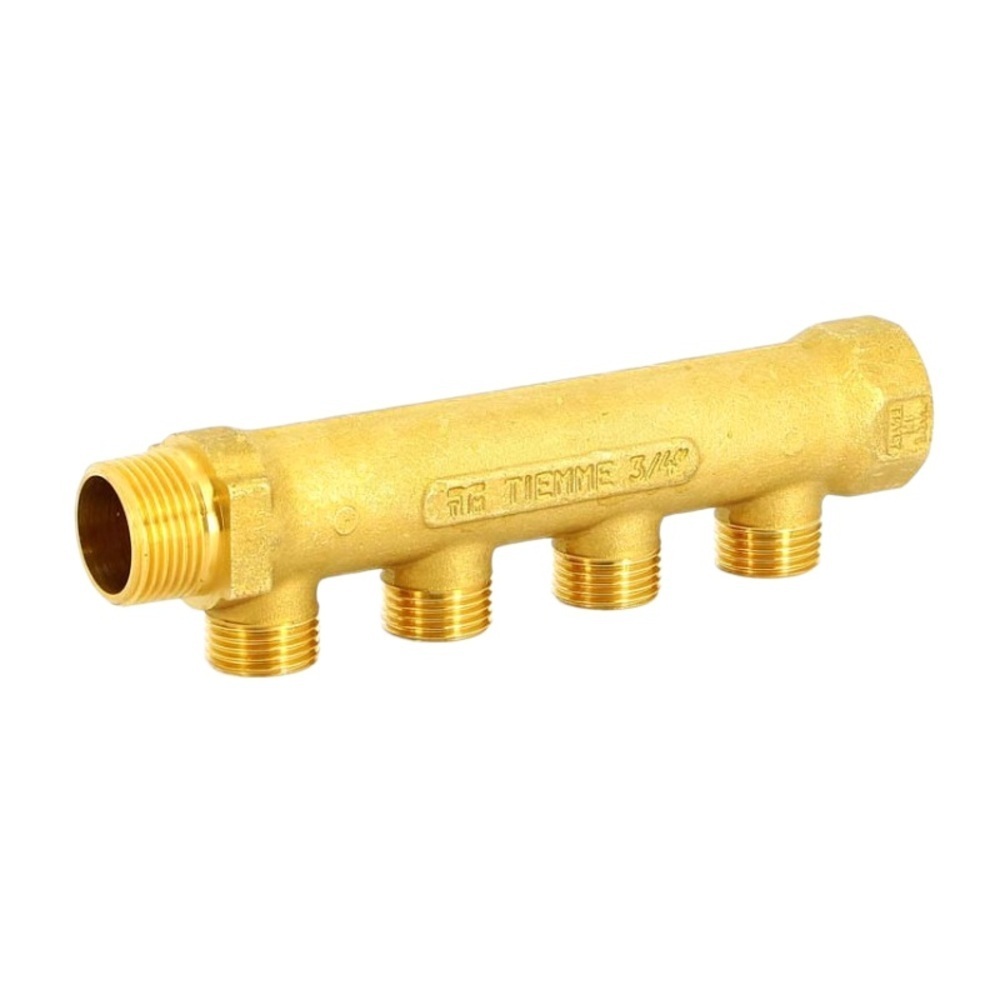 Коллектор Tiemme 3/4 ВР(г) х 4 выхода 1/2 НР(ш) ЕК х 3/4 НР(ш) регулируемый (1910001)