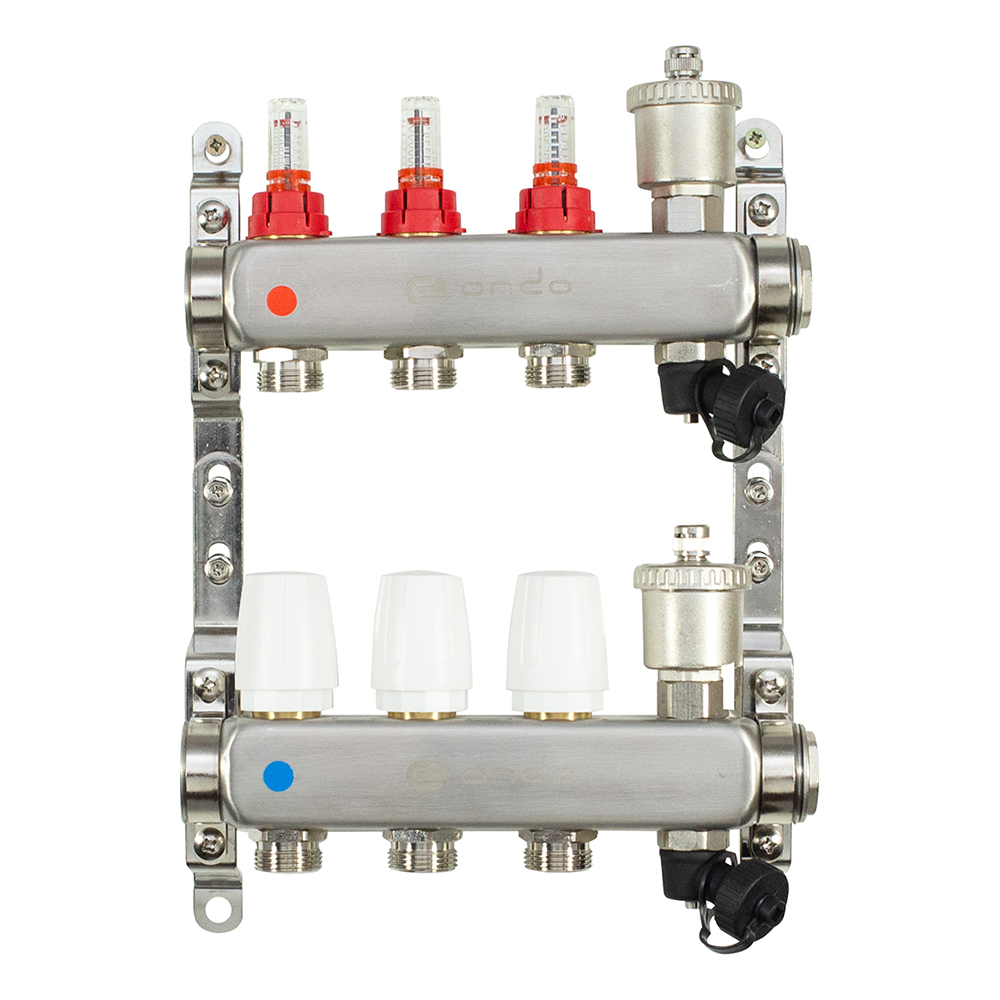 Коллекторная группа с расходомерами Ondo 1 ВР(г) х 3 выхода 3/4 НР(ш) ЕК х 1 ВР(г)