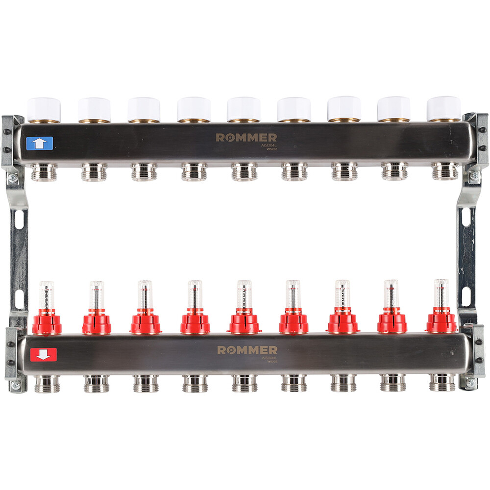 Коллекторная группа с расходомерами Rommer 1 ВР(г) х 9 выходов 3/4 НР(ш) ЕК х 1 ВР(г)