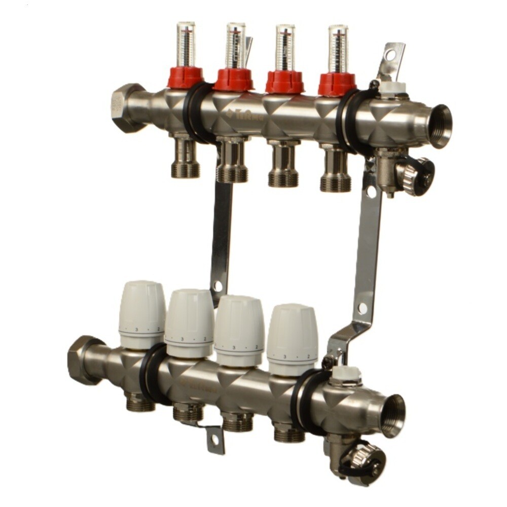 Предназначена для распределения потоков по контурам теплого пола, радиаторного отопления и прочих климатических систем, где в качестве теплоносителя используется вода, либо незамерзающие растворы. Выходы обратного коллектора оборудованы термостатическими, а подающего — настроечными клапанами. Группа оснащена воздухоотводчиками, отсекающими клапанами, дренажными кранами и самоуплотняющимися заглушками. Стандарт присоединения трубных петель — евроконус на 3/4 дюйма. Диаметр подключения 1 дюйм — присоединение накидной гайкой.