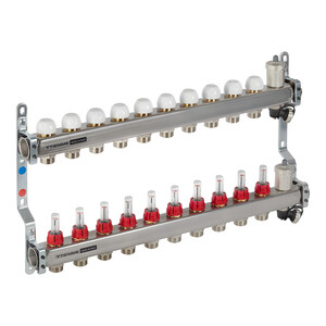 Коллекторная группа с расходомерами Tiemme 1 ВР(г) х 10 выходов 3/4 НР(ш) ЕК х 1 ВР(г)