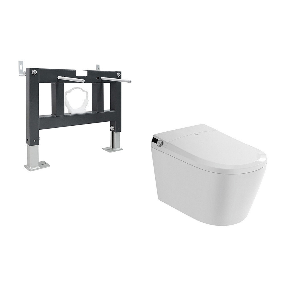 Комплект состоит из подвесного керамического электронного унитаз-биде с импульсным смывом, сиденья для унитаза из дюропласта с микролифтом, инсталляции.
