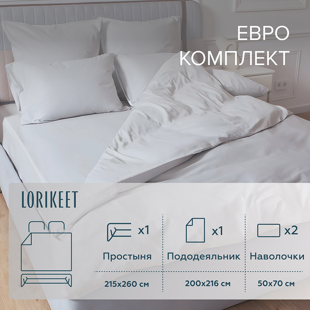 Комплект постельного белья Евро сатин Lorikeet Solo белый с простыней 215х260 см