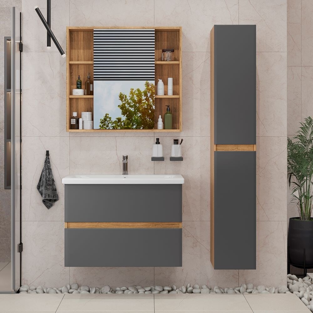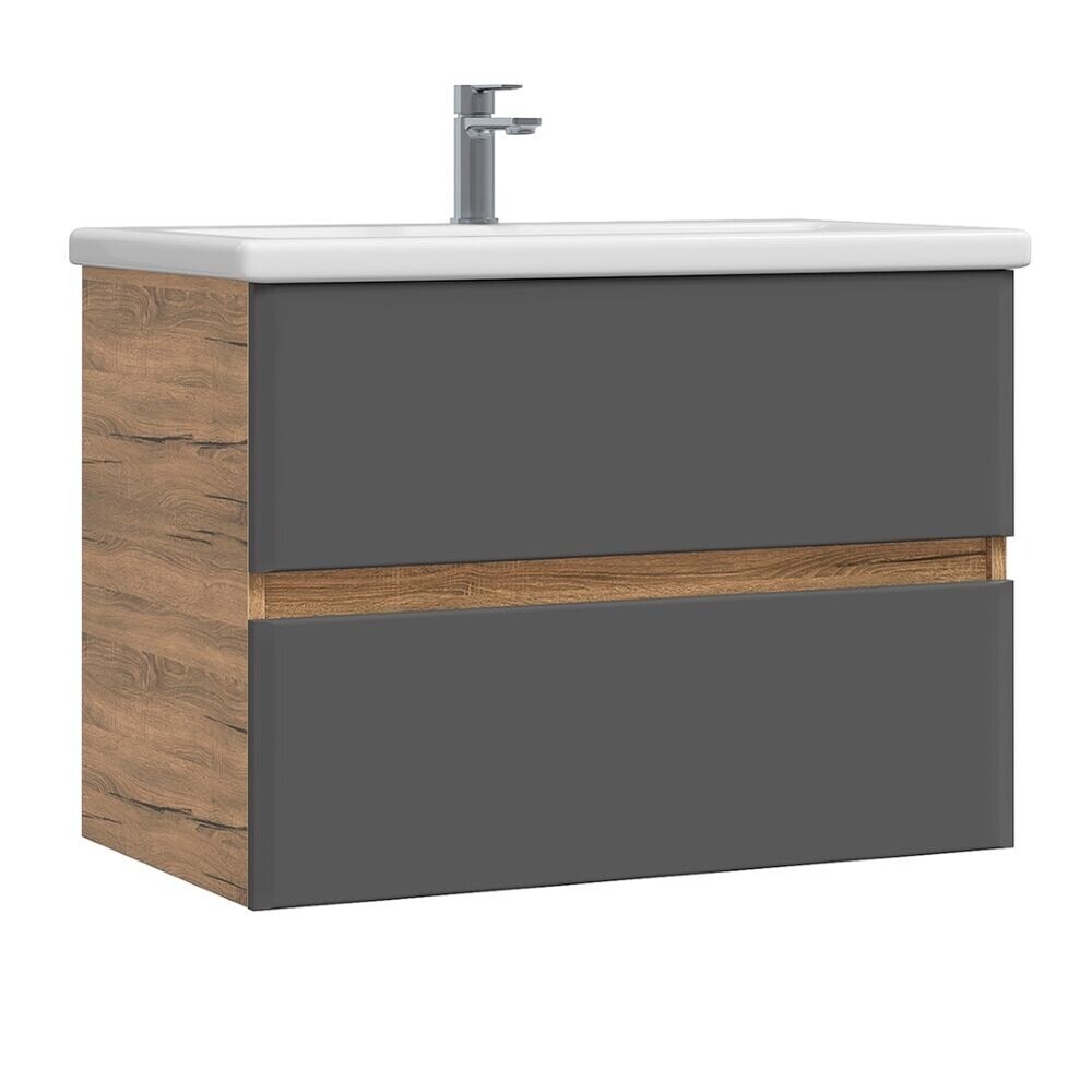 Комплект тумба с раковиной Sanstar Graffa 70 см подвесная дуб вотан/графит софт (452.1-1.4.1.ККОМ)
