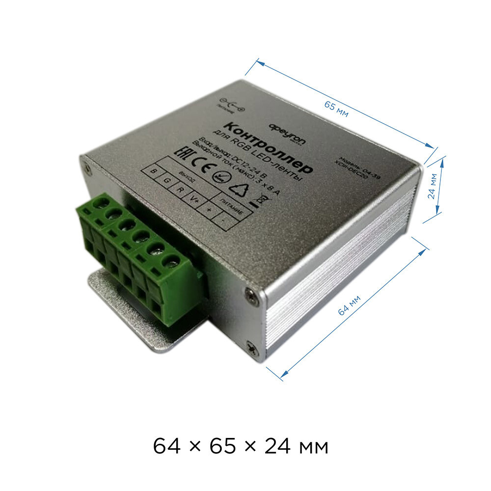 Предназначен для управления многоцветной светодиодной лентой RGB. С помощью него можно регулировать цветовые оттенки, включать или выключать светодиодную ленту, выбирать различные динамические режимы свечения светодиодной ленты, регулировать яркость, а также подобрать комфортную скорость смены цветов в динамических режимах. Еще контроллер позволит отрегулировать свечение – создать атмосферу релакса и расслабления или выбрать фантастическую игру цвета, чтобы удивить близких и друзей. Одно из преимуществ данного изделия заключается в возможности работать как от напряжения 12 В, так и 24 В, а значит его можно использовать со светодиодными лентами с соответствующим напряжением. Важно отметить, что в зависимости от того, с каким напряжением предстоит работать устройству, будет отличаться и максимальная мощность нагрузки, которую можно подкл…