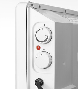 Предназначен для обогрева помещений площадью до 25 м² и применяется в квартирах, на дачах, в офисах и др. Имеет 2 режима работы нагревательных элементов, функцию защиты от перегрева, регулируемый термостат, световую индикацию включения/выключения, колесики для перемещения.