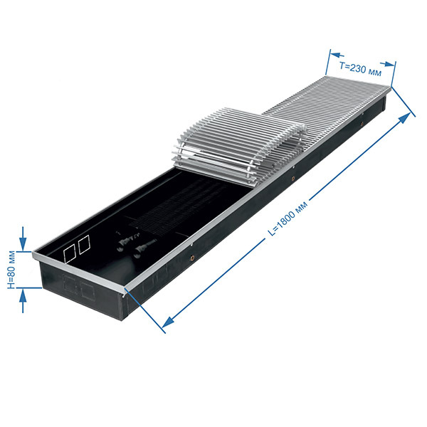 Главная / Каталог / Инженерные системы / Отопление / Радиаторы отопления и комплектующие / Конвекторы отопления / Конвектор внутрипольный Gekon Eco с 1 теплообменником 1800х230х80 мм боковое/нижнее подключение