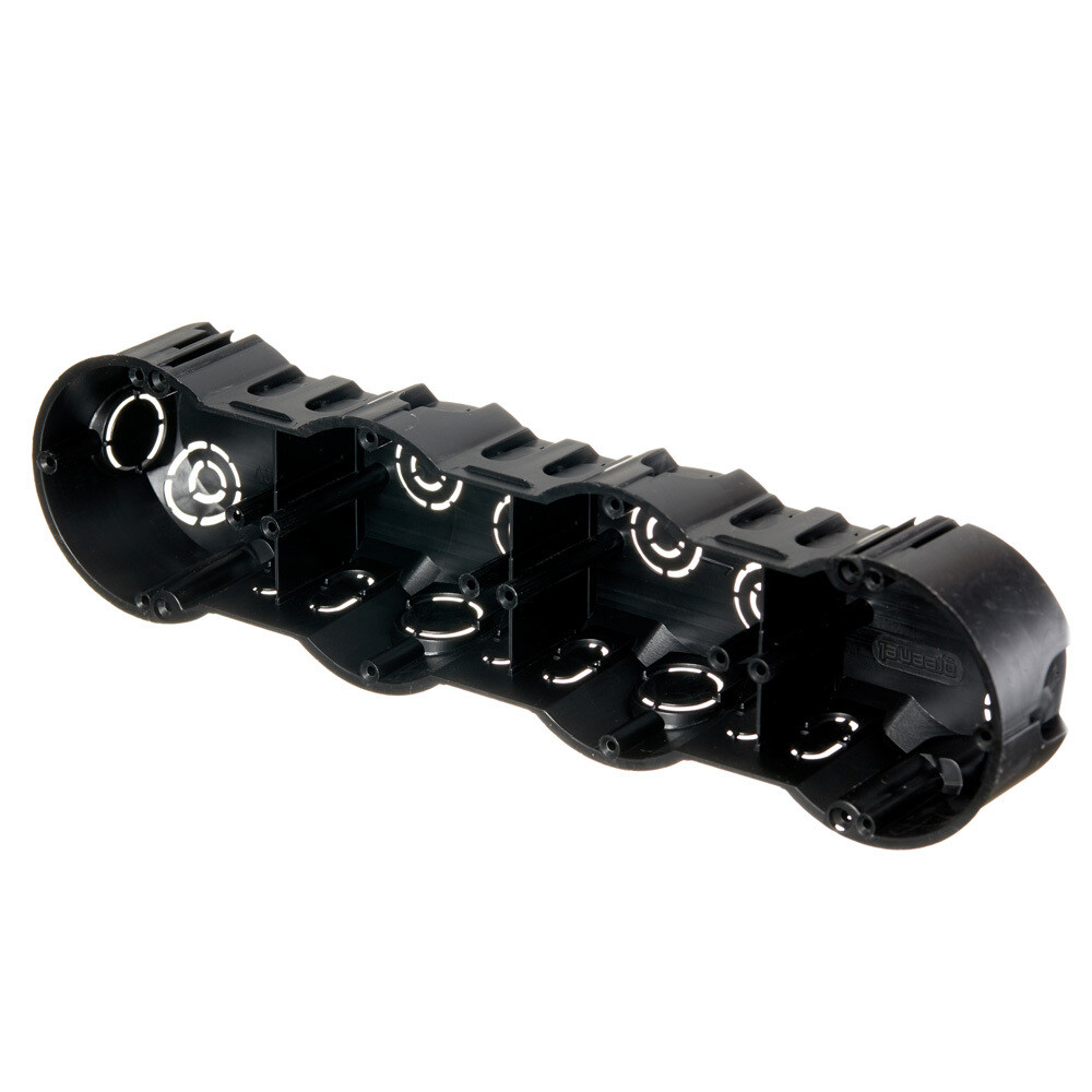 Предназначена для монтажа бытовых розеток, выключателей, светорегуляторов и иных приборов на винтах или металлических захватах в кирпичные или бетонные стены, при скрытой электропроводке блоком из 4 приборов, объединенных декоративной рамкой. Присоединительные размеры 240 (60+60+60+60) мм, глубина 45 мм.