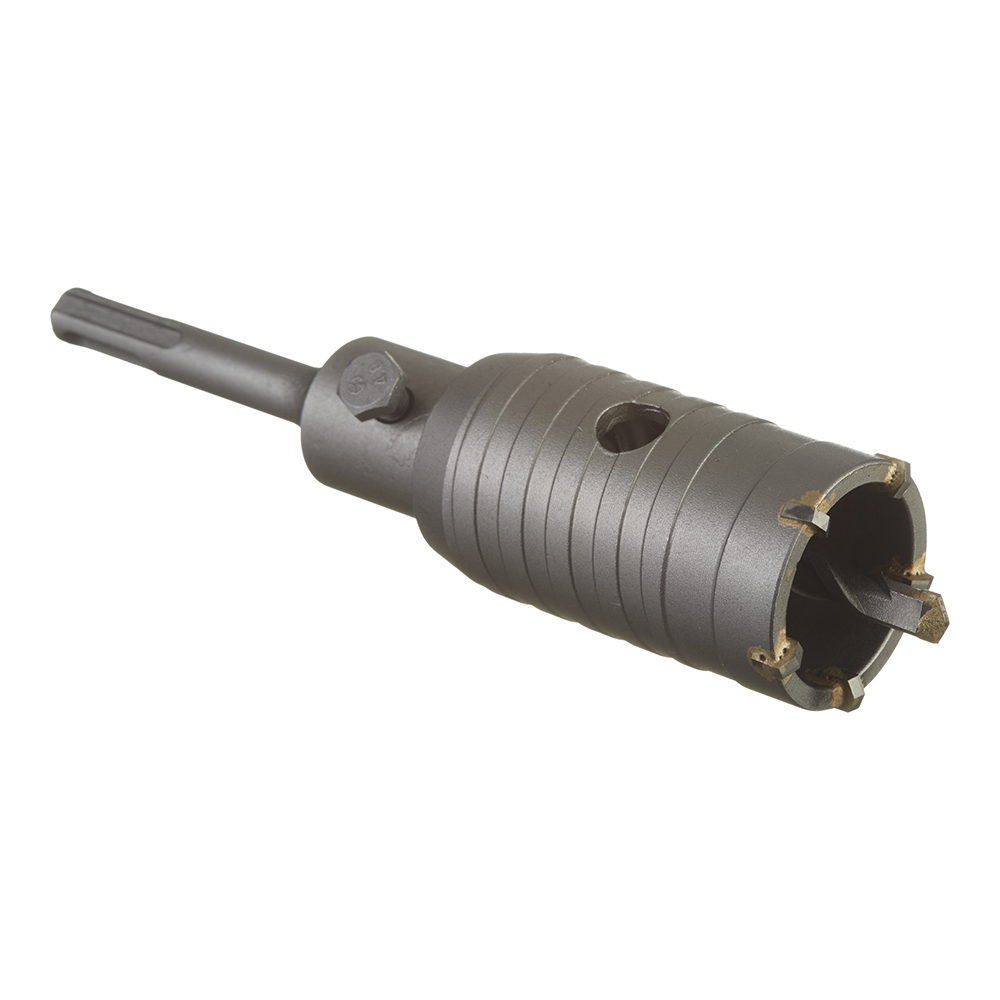 Предназначена для перфораторов с системой крепления SDS-Plus. Оснастка применяется для сверления отверстий в бетоне, кирпиче и камне. Державка и сверло поставляется в комплекте с коронкой. При необходимости возможно сверление сквозных отверстий под сантехнические и вентиляционные трубы, периодически вынимая керн. В случае сверления в армированном бетоне используйте алмазную коронку в неударном режиме.