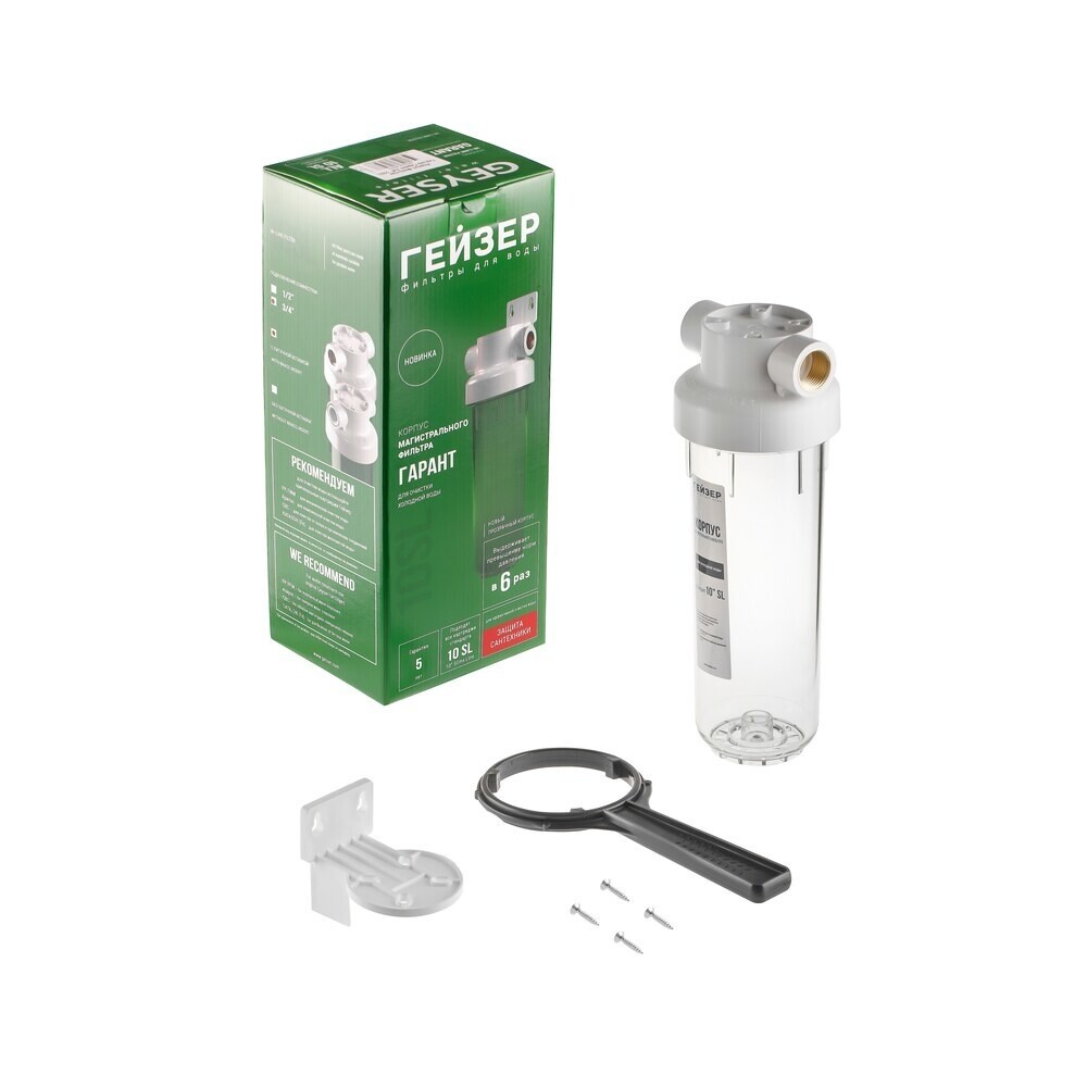 Корпус фильтра Гейзер Гарант для холодной воды пластик 10SL 3/4 ВР(г) х 3/4 ВР(г) прозрачный