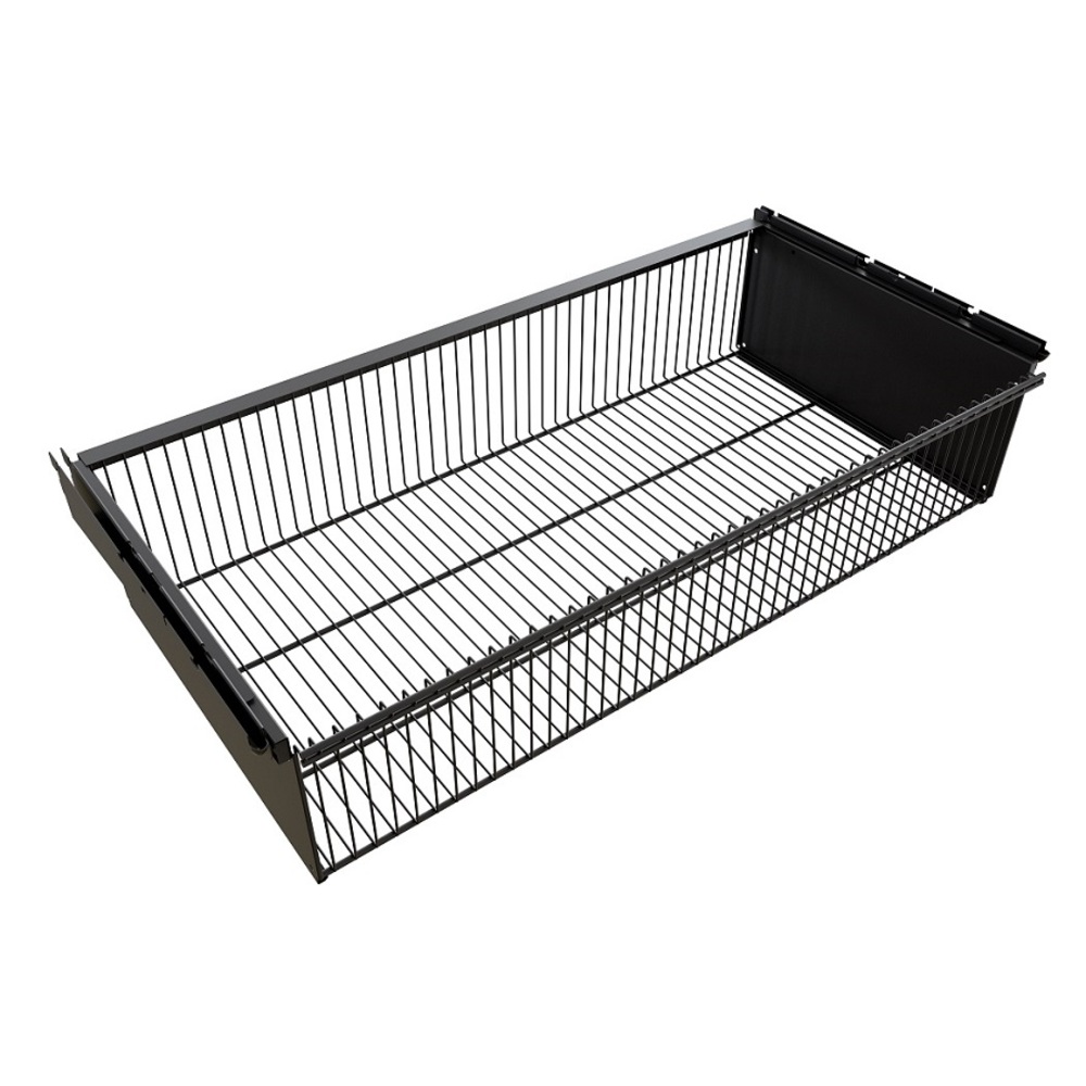 Главная / Каталог / Товары для дома / Хранение в доме / Гардеробные системы металлические / Полки, корзины и аксессуары / Корзина выдвижная металлическая черная 863х440х181 мм Титан-GS