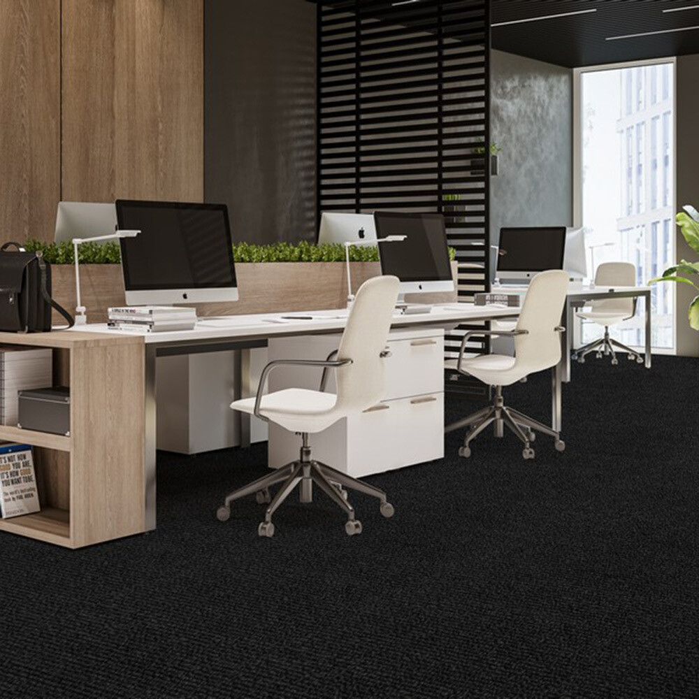 Ковролин из полипропиленового ворса. Основа ковролина – искусственный джут. Однотонный темный цвет не подвержен выгоранию и истиранию.