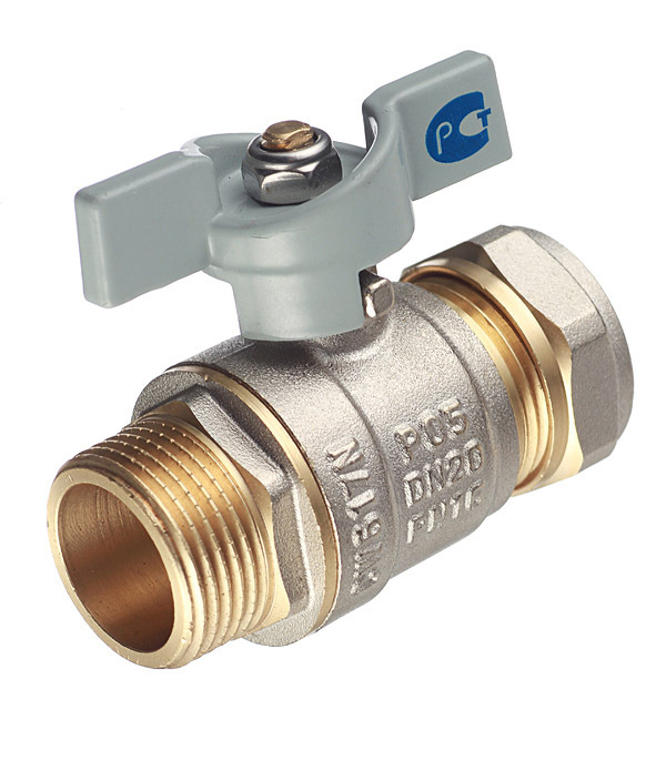 Кран шаровой латунный 20 обж(ц) х 3/4 НР(ш) для металлопластиковых труб бабочка прямой