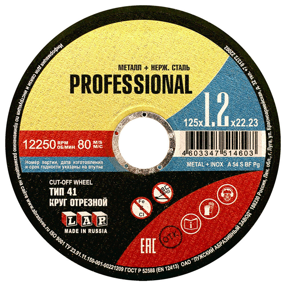 Круг отрезной по металлу Луга Professional 125х22,23х1,2 мм