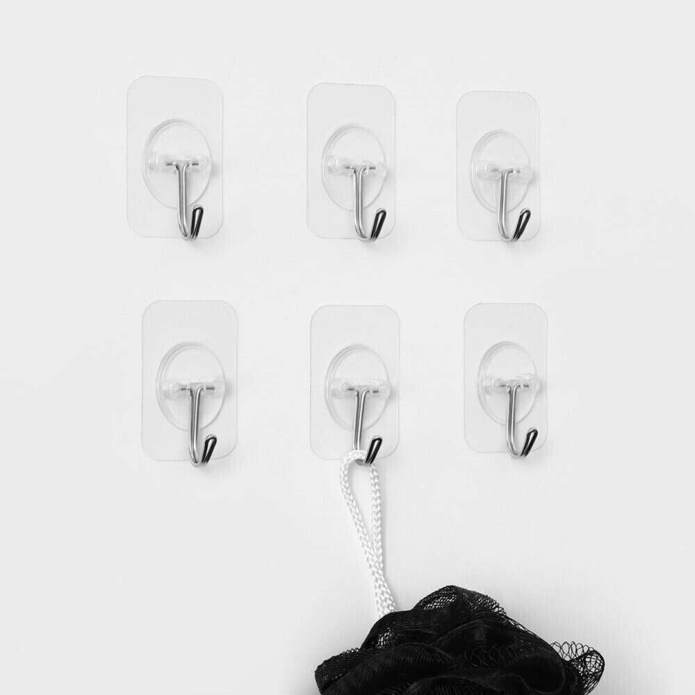 Крючок для ванной Доляна Классика одинарный самоклеящийся металл/пластик прозрачный (6 шт.) (7089053)