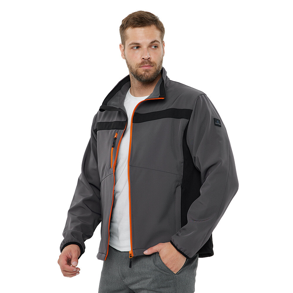 Материал разработан для повседневного использования, защищает от непогоды, быстро высыхает при попадании под небольшой дождь, хорошая ветрозащита. Softshell состоит из двух текстильных